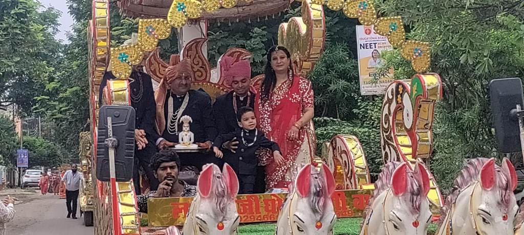 रायपुर। नगर में पहली बार शंखेश्वर पार्श्वनाथ प्रभु की भव्यतम भावयात्रा निकाली गई। बैंड-बाजे,घोड़े,सुसज्जित बग्गी के साथ भक्तिमय वातावरण में रविवार सुबह विवेकानंद नगर स्थित लाभार्थी संघपति के निवास स्थान से भावयात्रा का शुभारंभ हुआ। चतुर्विद संघ के परम सानिध्य में भावयात्रा टैगोर नगर होते हुए शंखेश्वर तीर्थ मंडपम विवेकानंद नगर पहुंची। शंखेश्वर तीर्थ मंडपम में शंखेश्वर पार्श्वनाथ प्रभु की प्रतिमाओं को विराजित किया गया।