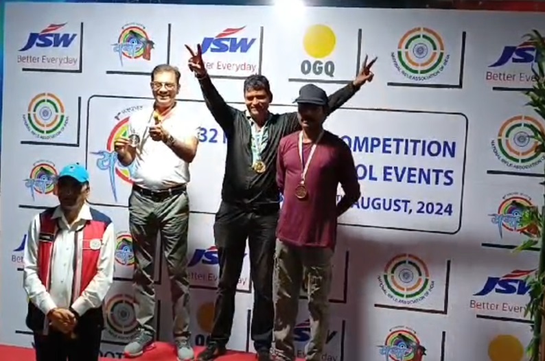रायपुर । रायपुर के निशानेबाज हेमन्त शर्मा ने छत्तीसगढ़ चैंपियनशिप में 50 मीटर राइफल स्पर्धा में स्वर्ण पदक हासिल कर अपने शहर का नाम रोशन किया। यह चैंपियनशिप 16 अगस्त से माना में आयोजित की गई थी, जहां हेमन्त ने शानदार प्रदर्शन करते हुए गोल्ड पर कब्जा जमाया।