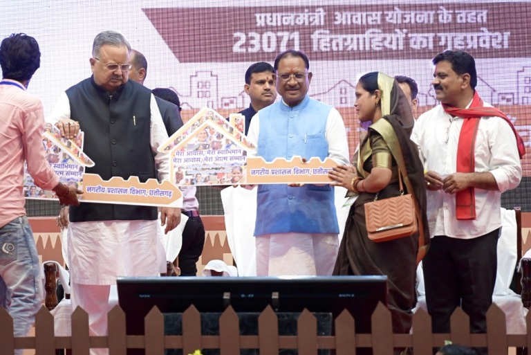 मुख्यमंत्री साय ने कहा कि रोटी, कपड़ा और मकान आम आदमी की सबसे बुनियादी आवश्यकताएं हैं, लेकिन आज़ादी के कई दशक बाद भी देश के करोड़ों नागरिकों के पास स्वयं का मकान नहीं हैं। आवासहीन परिवारों के मकान के सपने को प्रधानमंत्री आवास योजना के माध्यम से पूरा किया जा रहा है।