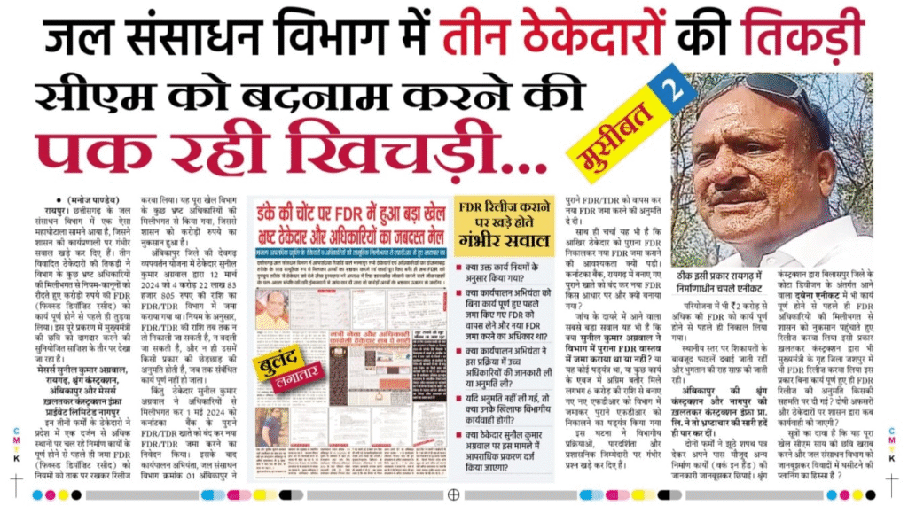 छत्तीसगढ़ जल संसाधन विभाग का मुखिया स्वयं मुख्यमंत्री Vishnu Deo Sai हैं। उनके ही गृह जिला जशपुर में तत्कालीन कार्यपालन अभियंता जामनिक पर ठेकेदार द्वारा जमा किए गए FIR/TDR रिलीज करने के मामले में एफआईआर दर्ज हो सकती है, तो फिर बिलासपुर संभाग के कोटा डिवीजन के दबेना एनीकट मामले में वही काम करने वाले तत्कालीन कार्यपालन अभियंता और वर्तमान अधीक्षण अभियंता सिद्दीकी पर कार्रवाई क्यों नहीं?